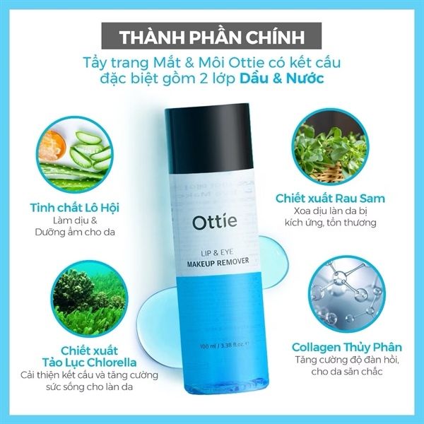 Dầu Tẩy Trang Mắt & Môi 2 Lớp Ottie Makeup Remove 100ML