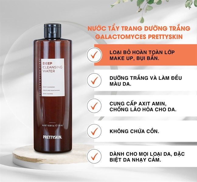 NƯỚC TẨY TRANG DƯỠNG TRẮNG PRETTYSKIN GALACTOMYCES FIRST DEEP 500ML (11/2027)