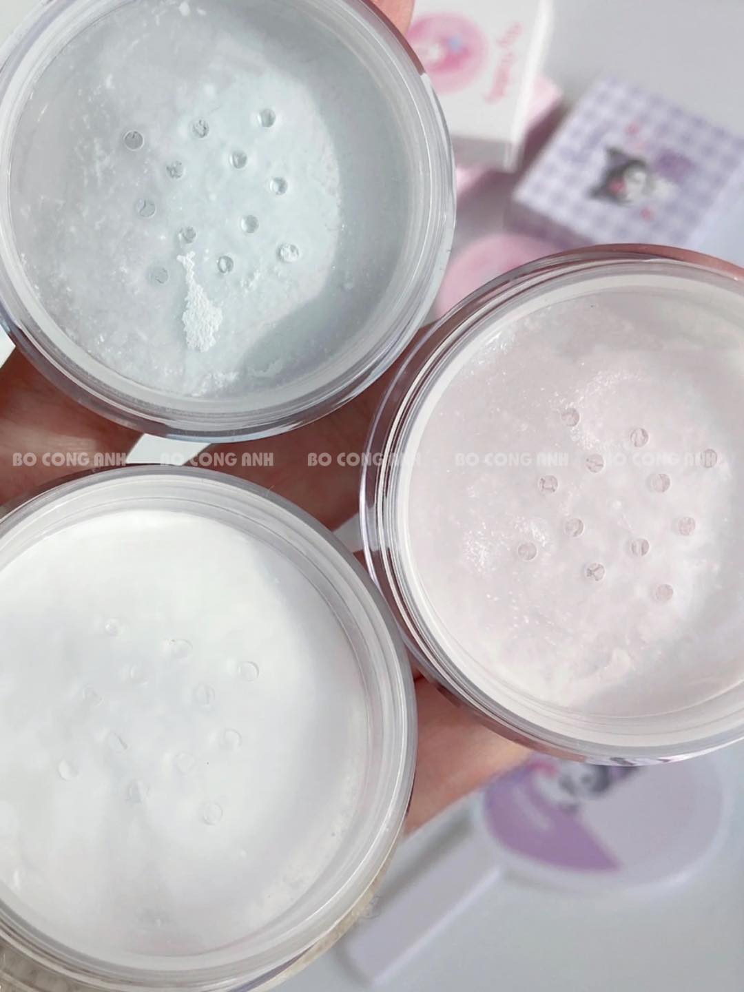 02 - Tím : bột phấn trong suốt nhẹ nhàng, thích hợp cho layout makeup cá tính nhưng lại thích nửa bánh bèo ngọt ngào.